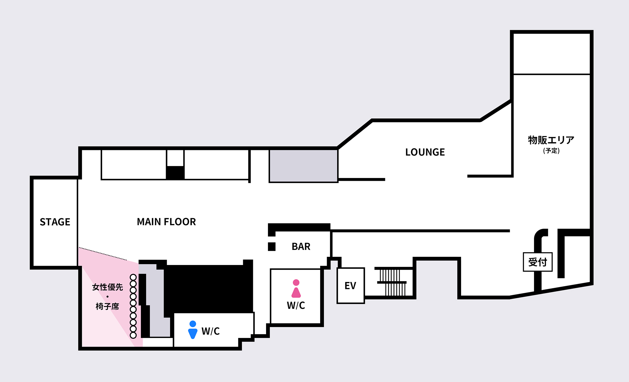 当日のフロアは以下のような仕様を予定しております。 より多くのお客様に快適に公演をお楽しみいただけますよう、お客様全員のご理解とご協力をお願い申し上げます。